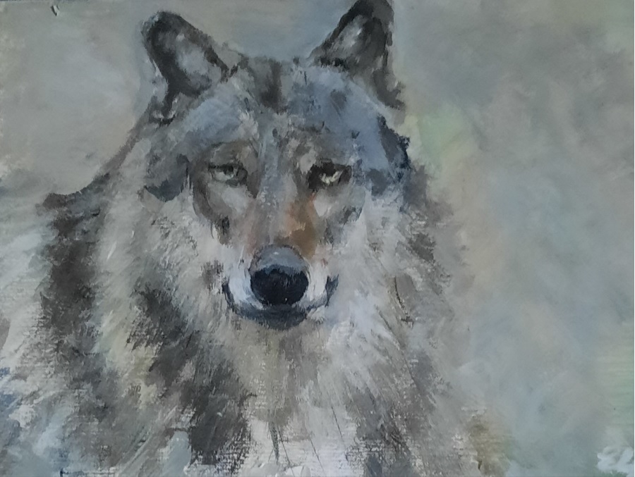 - Wolf, 30 x 40 cm, © 2024, Mixed media op doek